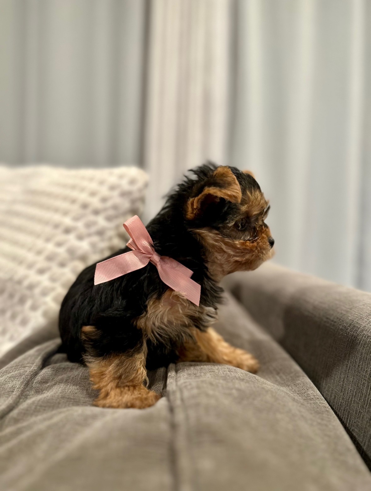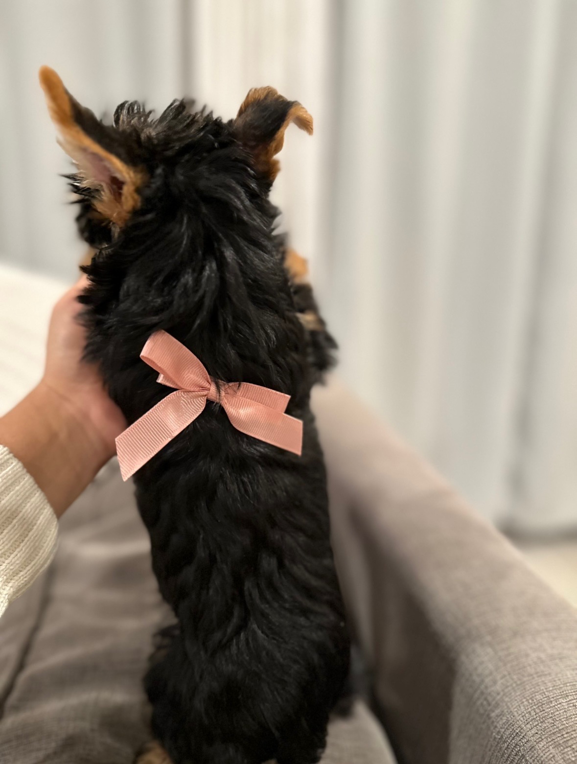 - Rose is a beautiful Yorkie girl with a rich black-and-tan coat and the dainty features the breed is known for.