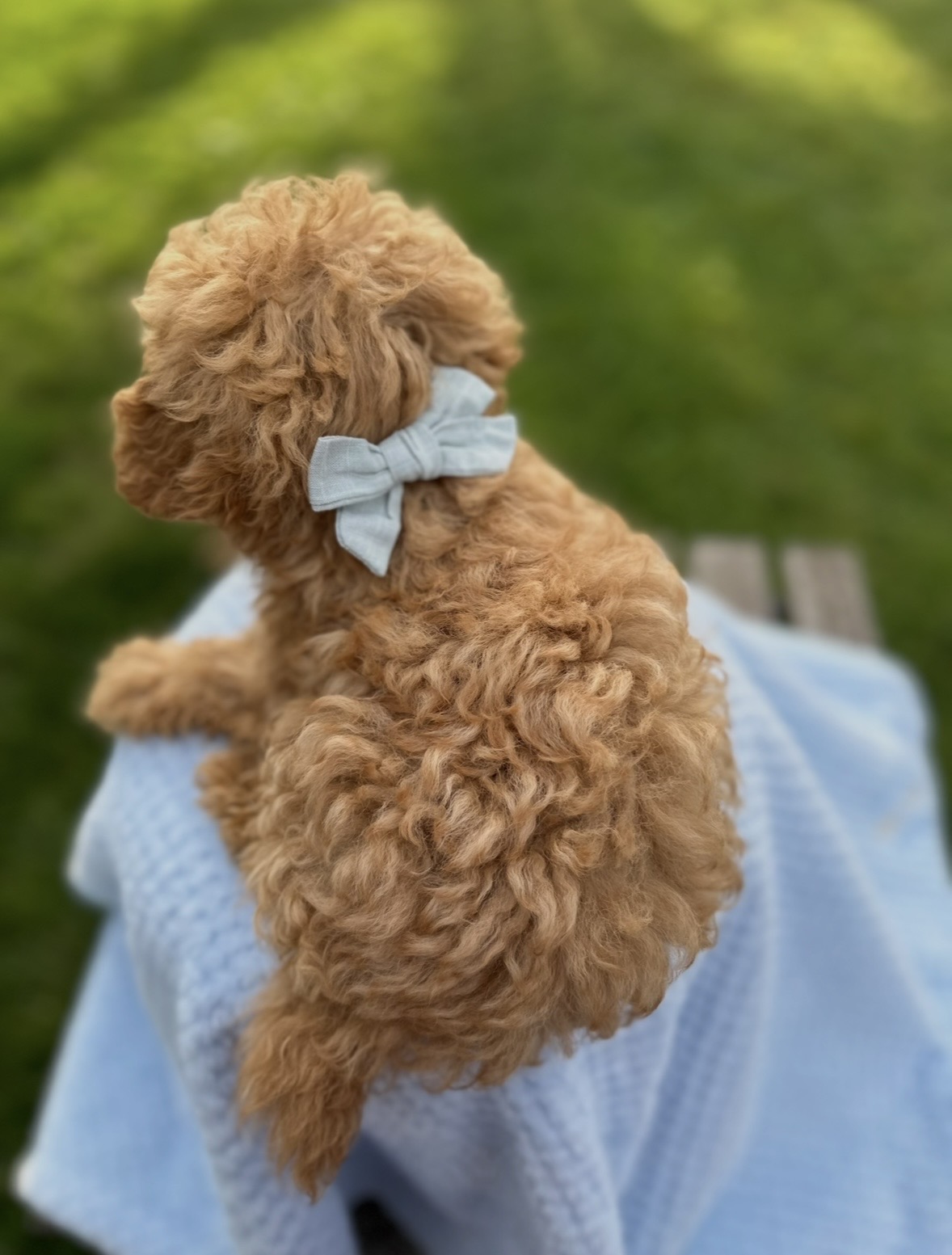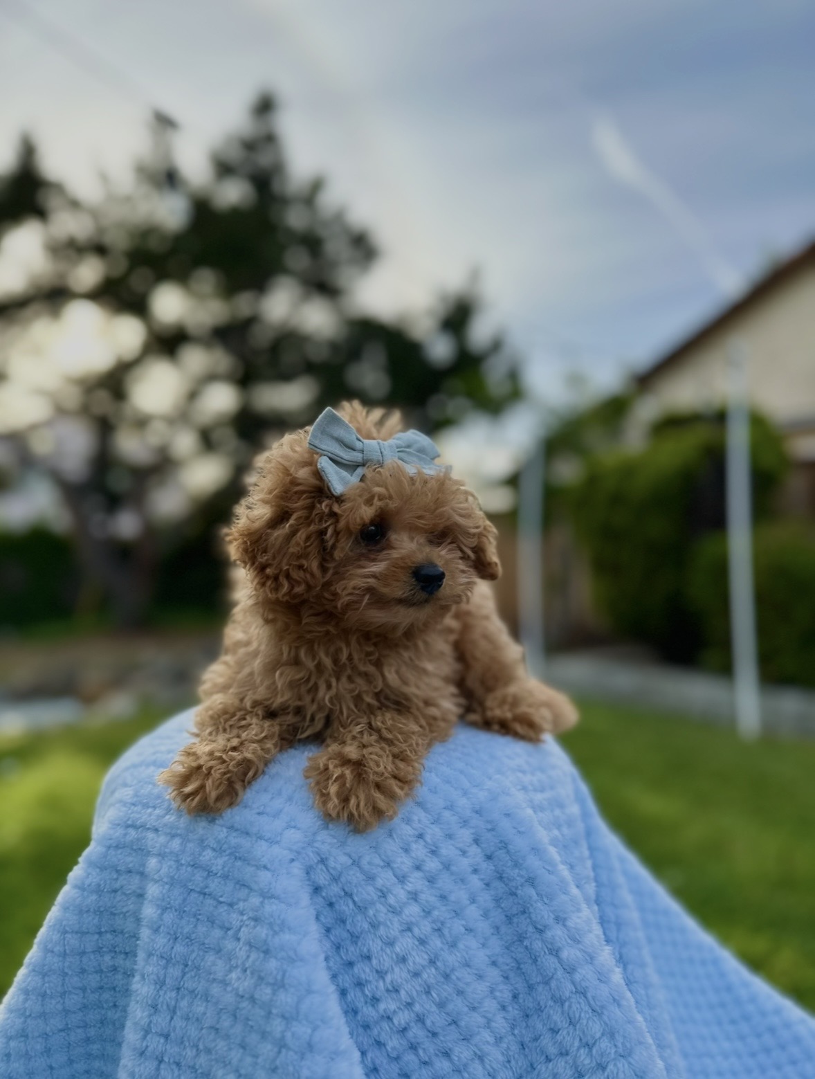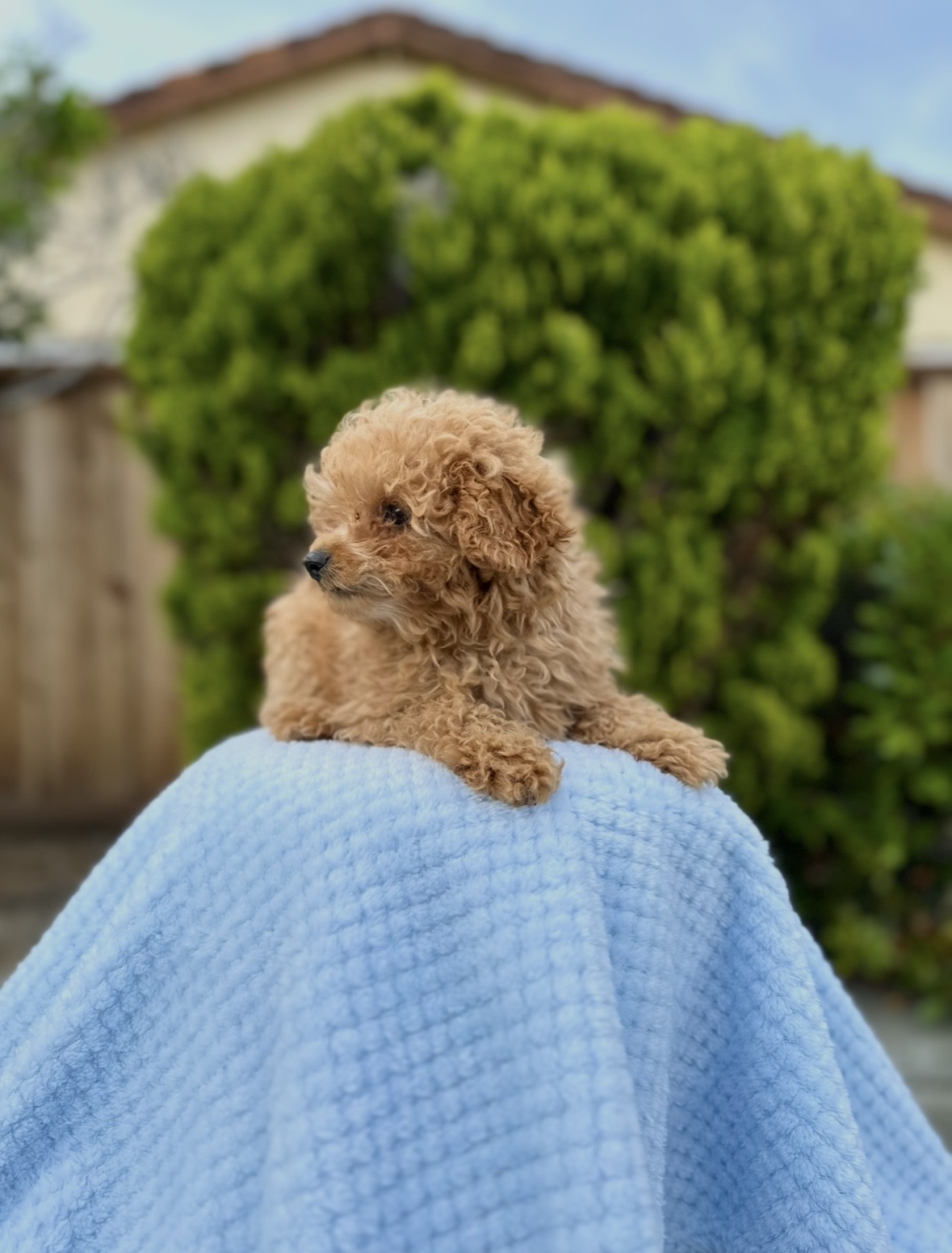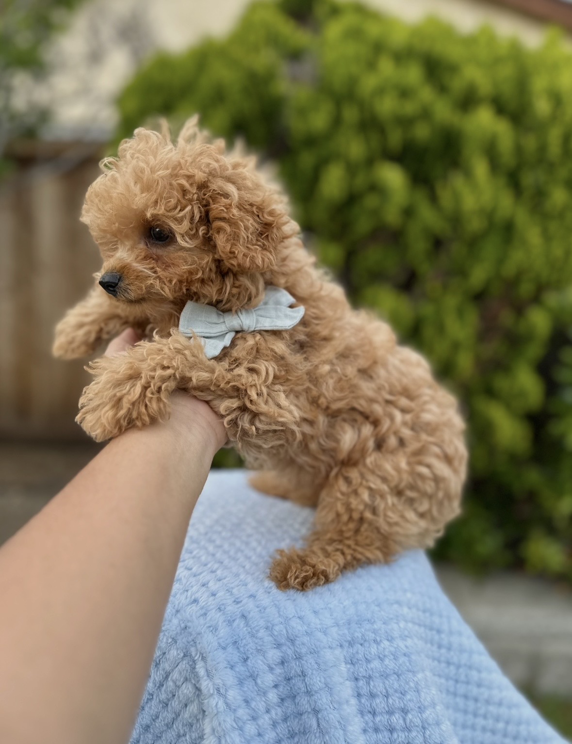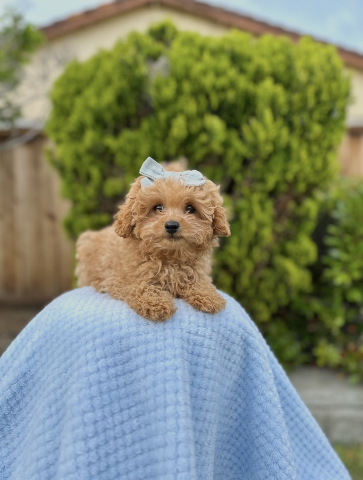 - Toffee is a male Maltipoo puppy with a beautiful deep apricot coat